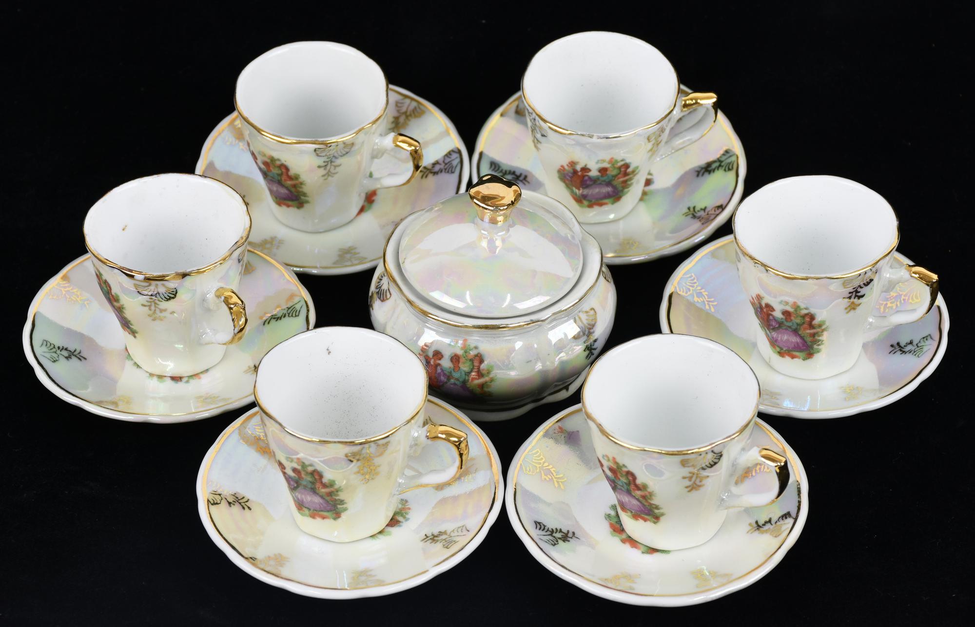 SERVIZIO DI TAZZINE IN MINIATURA in porcellana con decorazioni floreali marca...