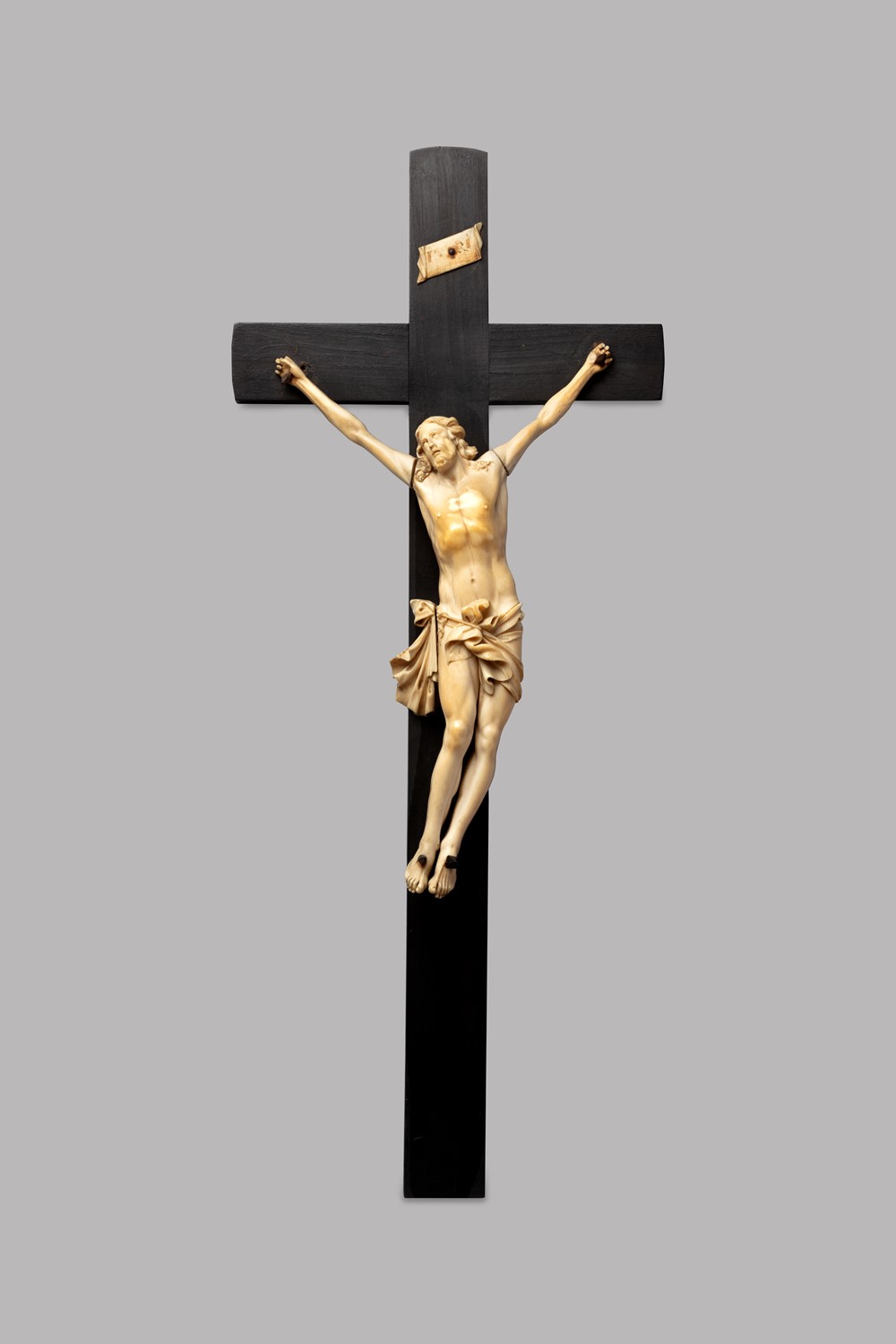 Crocifisso in avorio, su croce in legno ebanizzato, secolo XVIII
