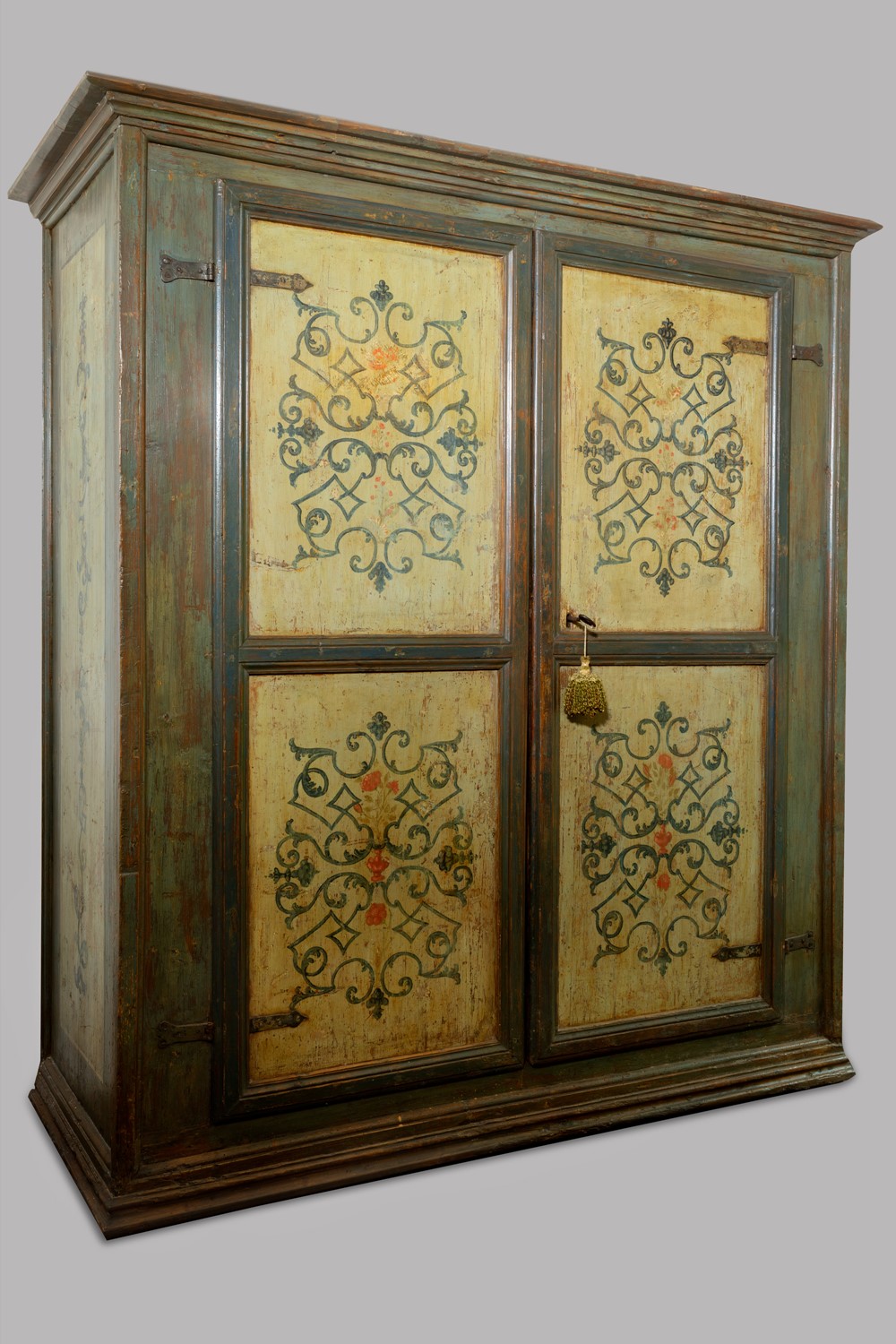 Armadio a due ante laccato e dipinto, Italia centrale, secolo XVIII