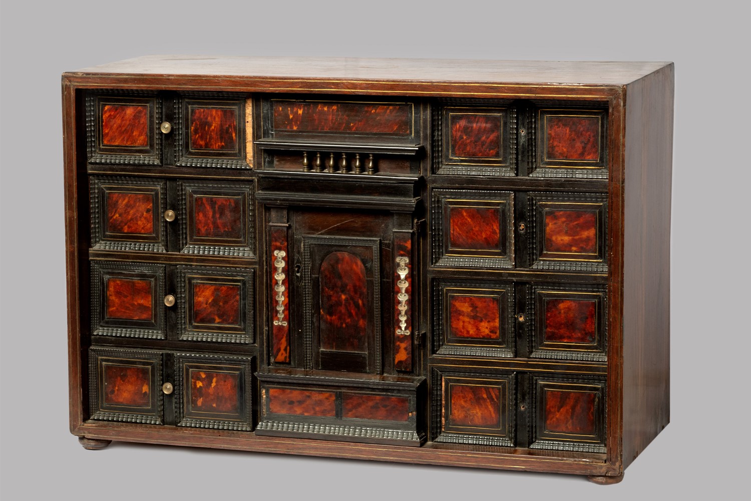 pannelli in tartaruga e filettature in legno ebanizzato, intarsi in madreperla