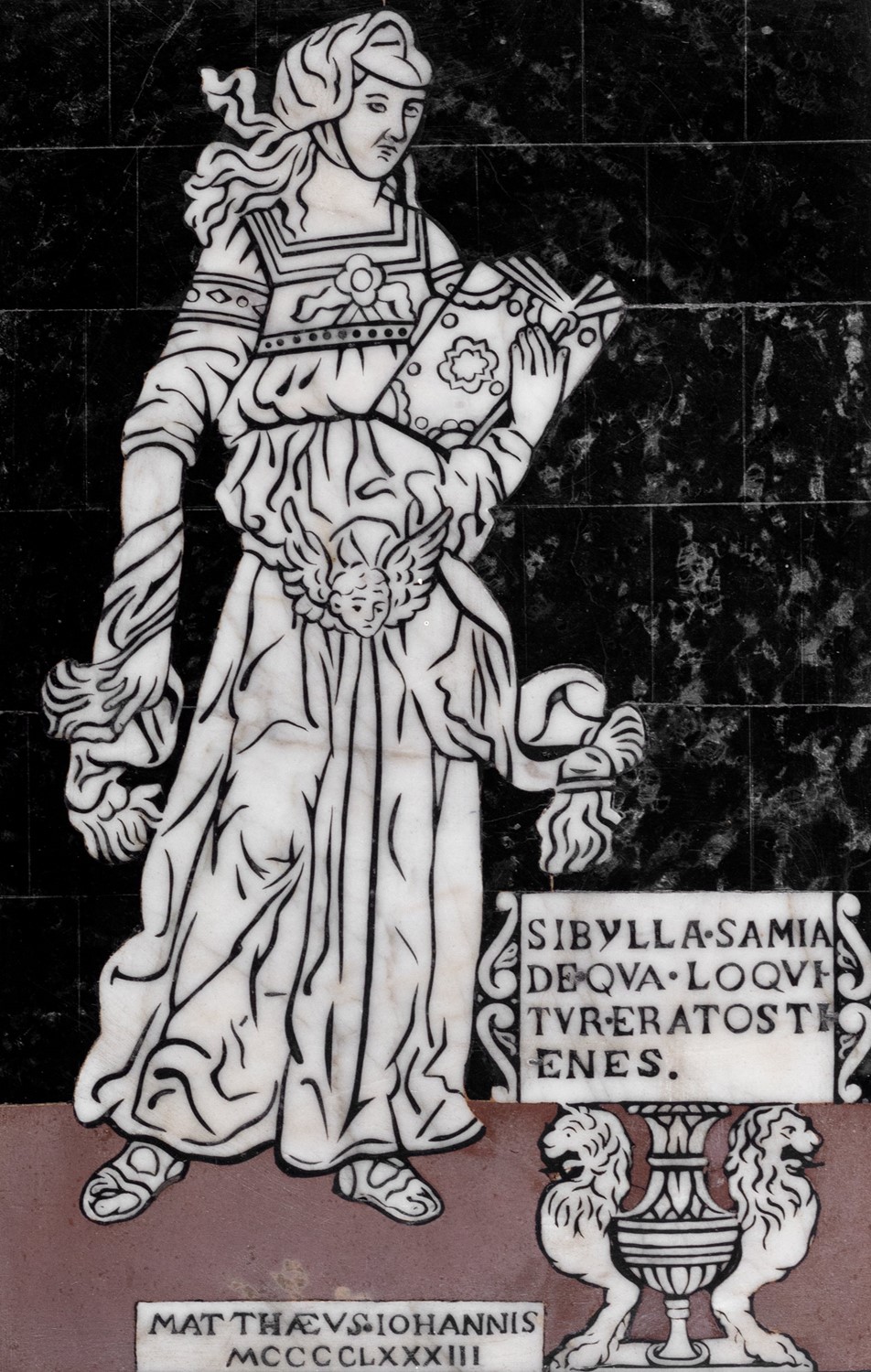 Giuseppe Corsini (attivo a Siena, secolo XIX) - Formella del pavimento del Duomo di Siena raffigurante la Sibilla Samia, 1890