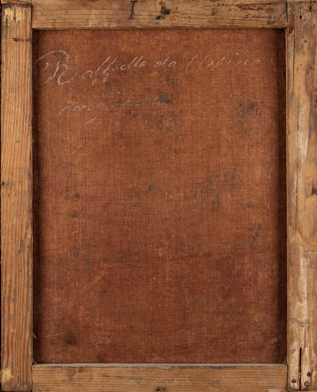 reca iscrizione sul retro della tela Raffaello da Urbino e sul telaio iscrizione con data e luogo: Lucca 18 aprile 1822