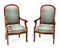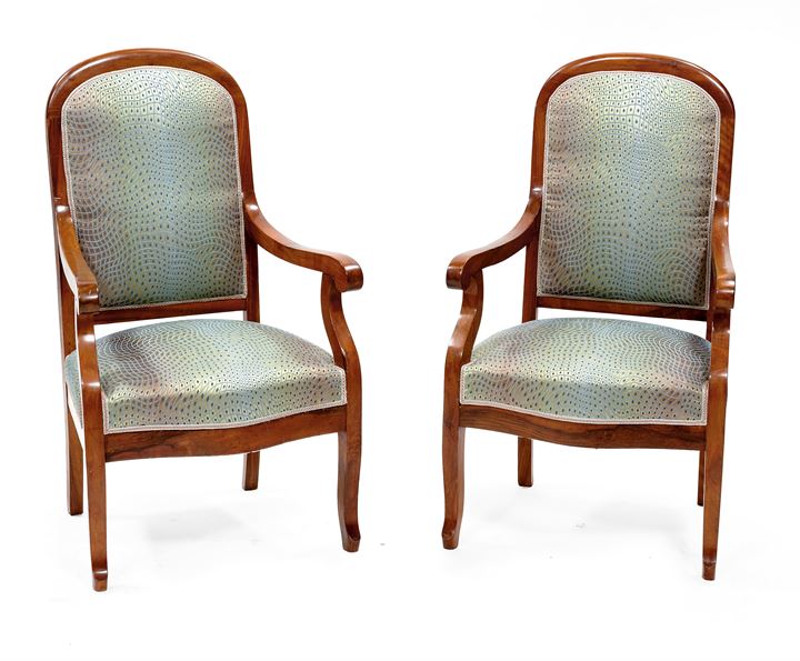 Lotto di due poltrone in noce bionda epoca XIX secolo, gambe mosse
