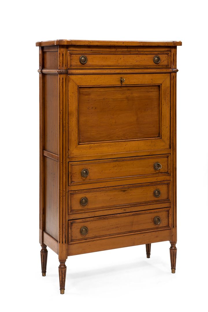 Secretaire in noce, in stile Luigi XVI, fronte a quattro tiretti; la calatoia cela quattro tiretti e due vani