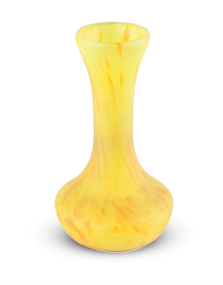 Vaso in vetro giallo marmorizzato arancio, Boemia, epoca 1940 circa, h. cm 16,5
