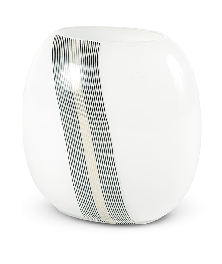 Lot 590 | VASO IN VETRO DI MURANO Vaso in vetro bianco con decoro a filamenti neri e ad...