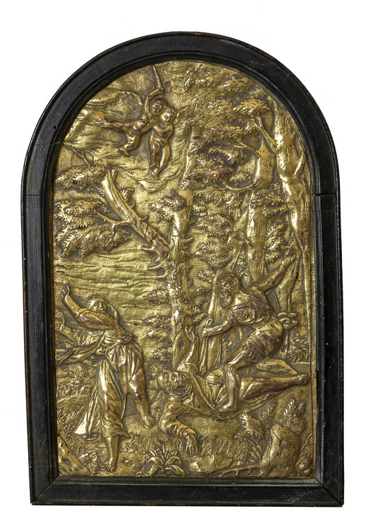 Placca in rame sbalzato e dorato cornice lignea coeva Venezia sec.XVII