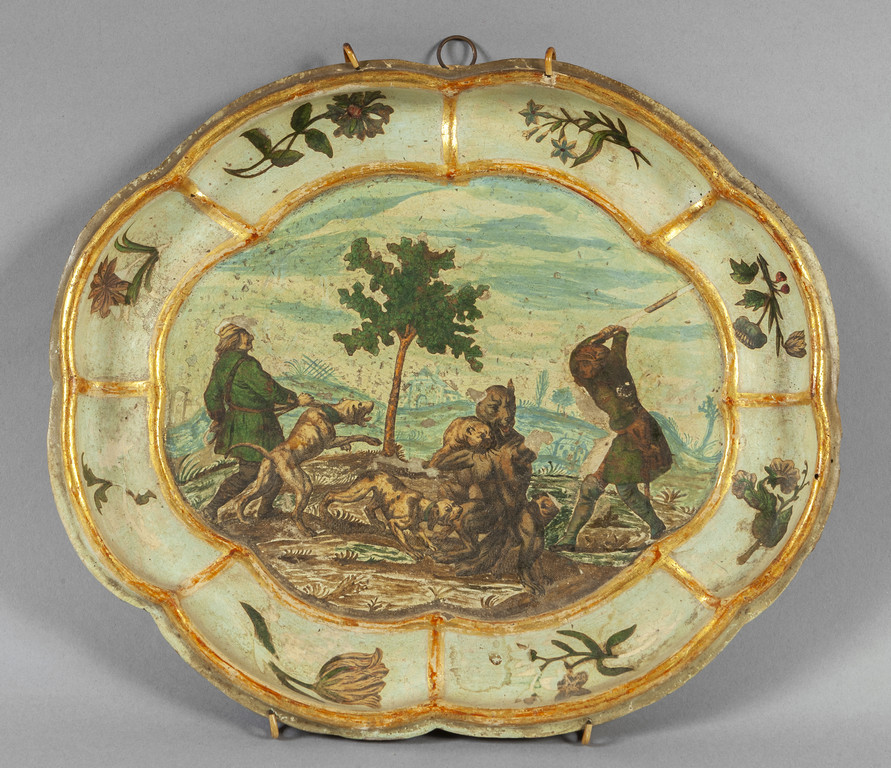 Vassoietto Luigi XV in legno dorato e policromato in arte povera Venezia sec.XVIII