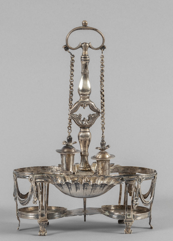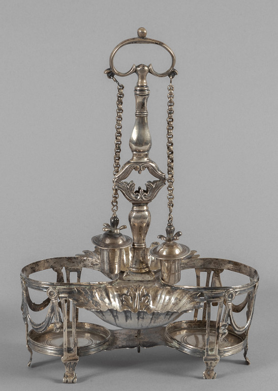 Oliera Luigi XV in argento finemente sbalzato Genova punzone della Torretta anno 1753