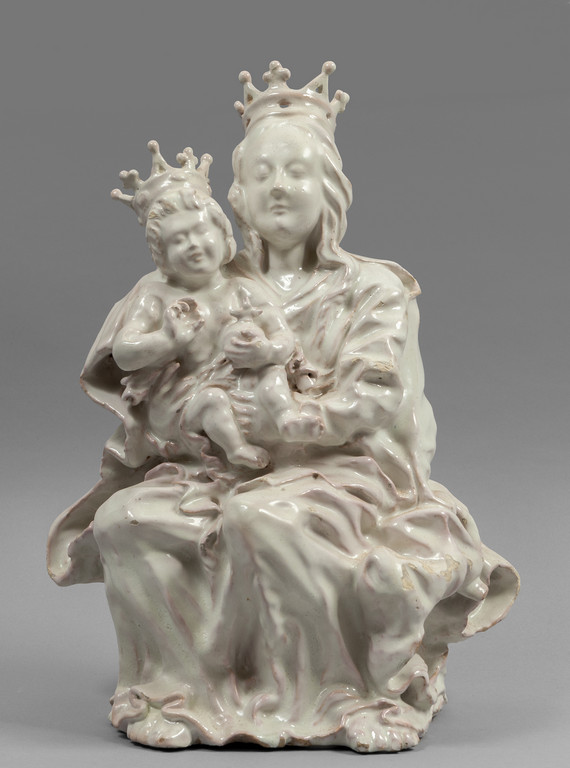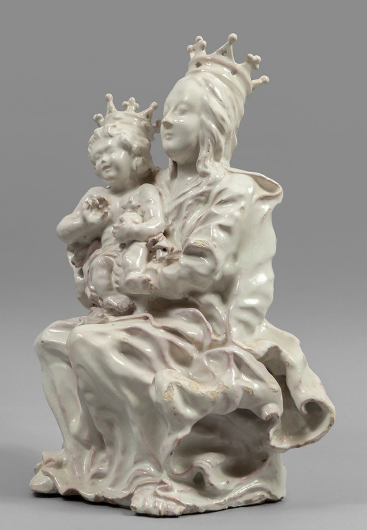 Madonna con Bambino scultura in terracotta smaltata in bianco Faenza sec.XVIII/XIX