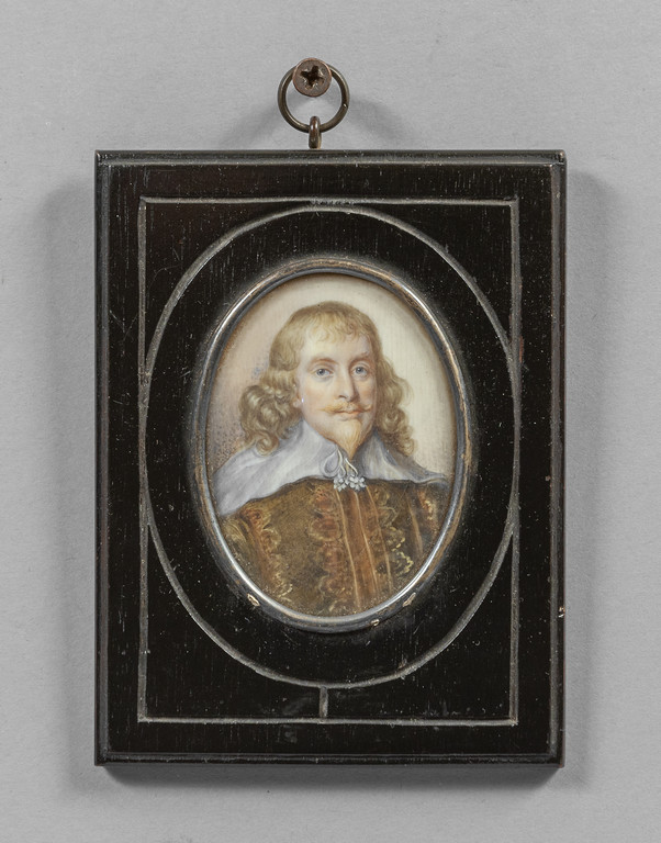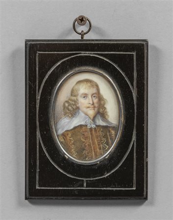 'Gentiluomo biondo con abito da parata' miniatura ovale sec.XIX