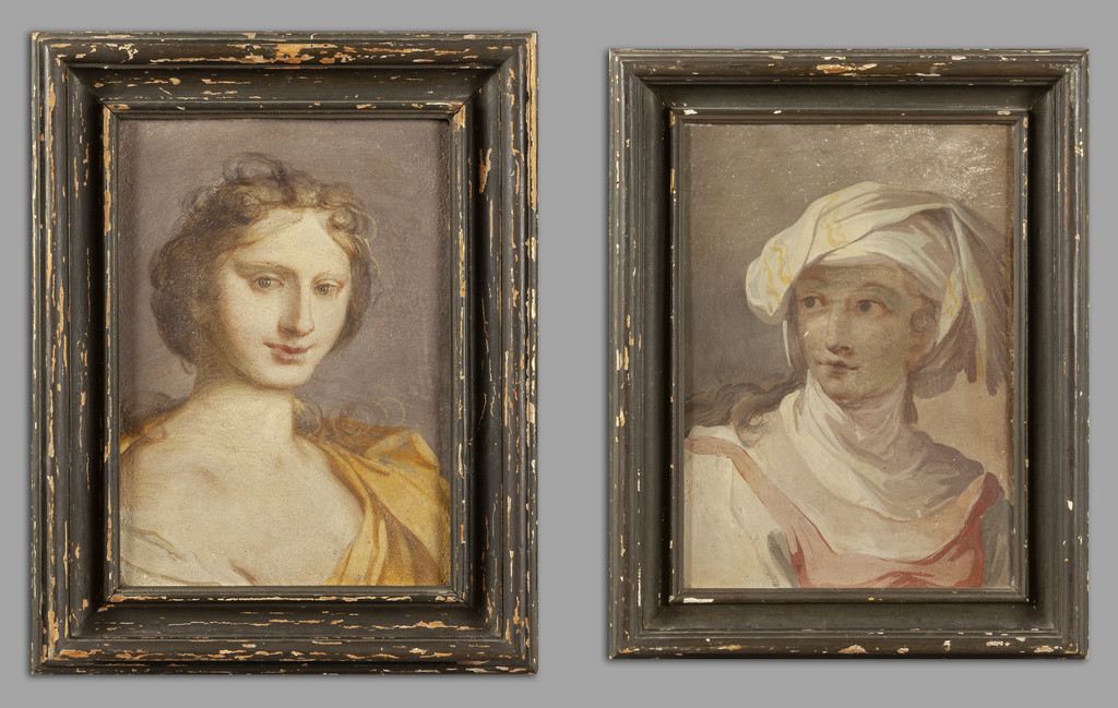 'Giovani donne' due dipinti su terracotta inizi sec.XIX