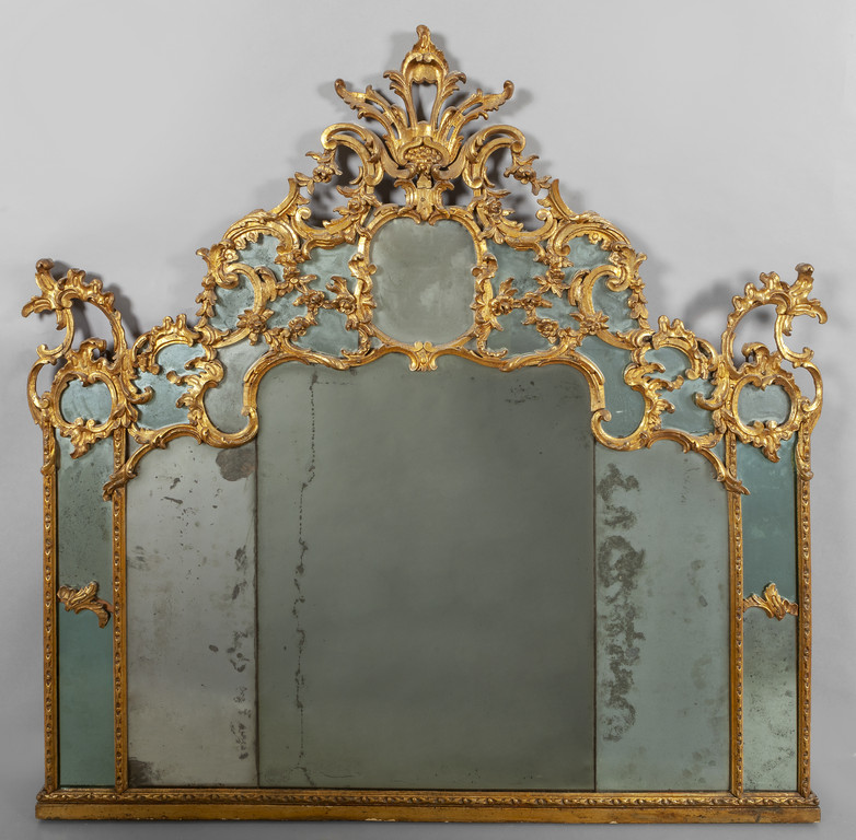 Caminiera Luigi XV in legno finemente intagliato e dorato con controspecchi Piemonte sec.XVIII