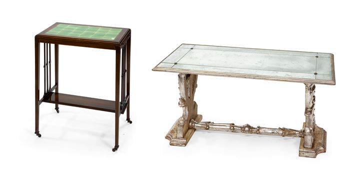 Lotto composto da due tavolini; il primo con piano rettangolare con specchi;