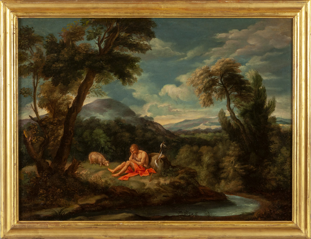 'Scena pastorale' olio cornice in legno intagliato e dorato