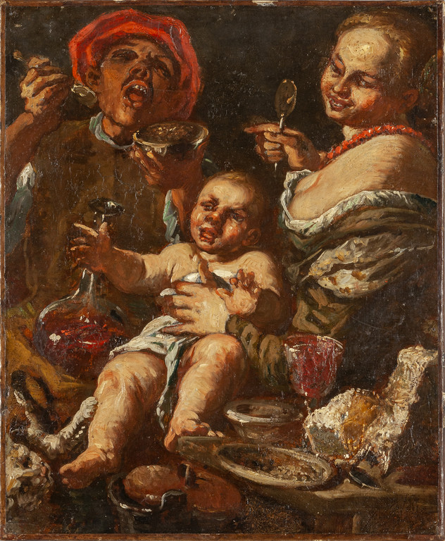 Scuola bergamamsca sec.XVIII/XIX 'La pappa del bambino' olio