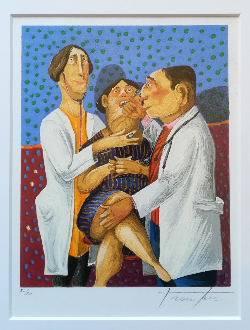 PINO PROCOPIO (1954) - La visita - Serigrafia materica cm 30x35 – Numerazione: 124/150 – Opera con cornice