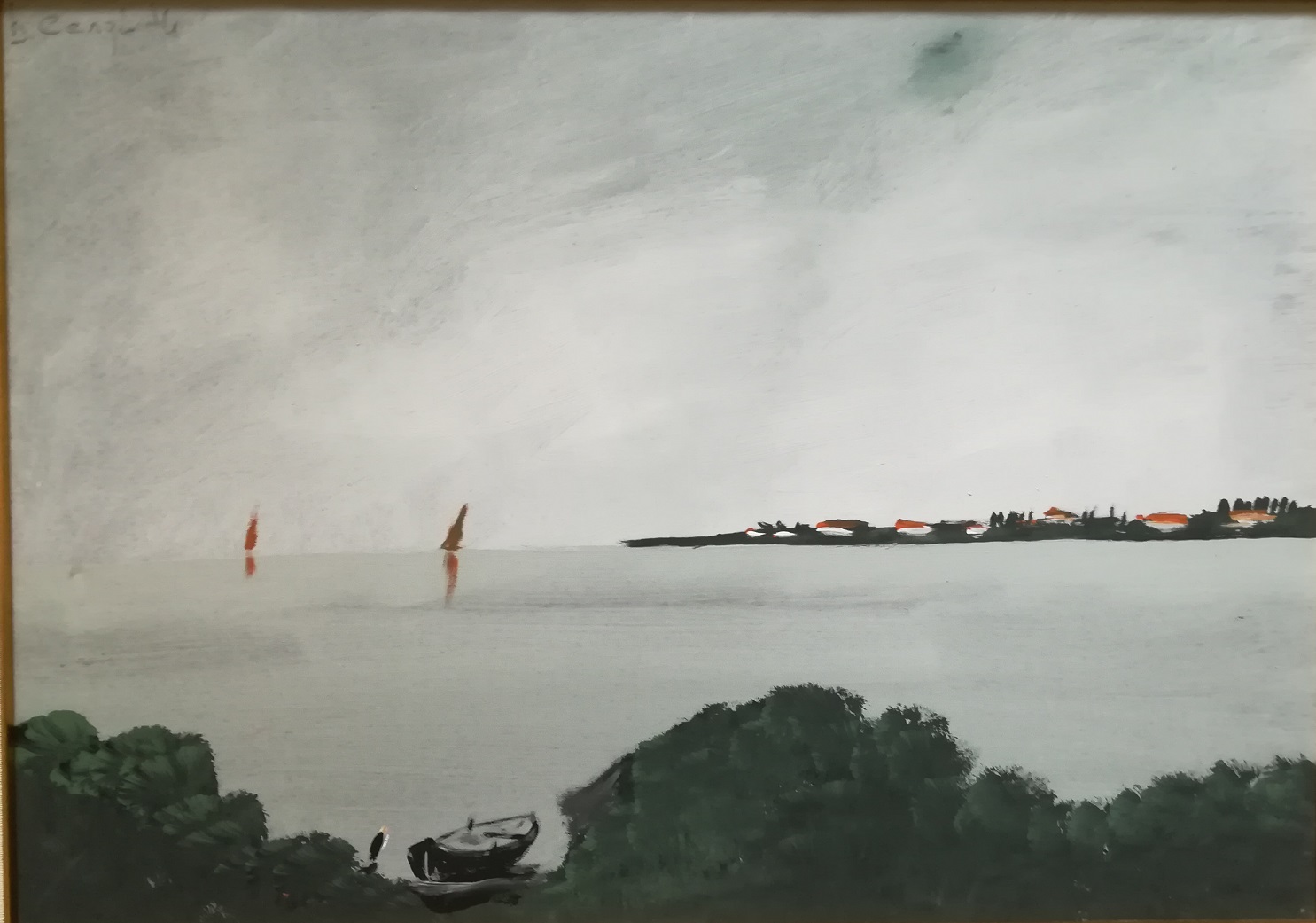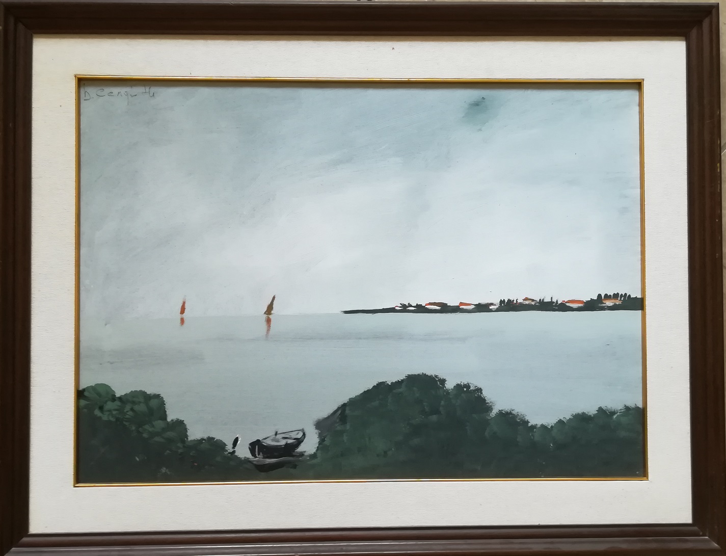 CENGIO BERTO – Panorama sul lago – Olio su tela del 1974 cm 70x50 – Opera con cornice