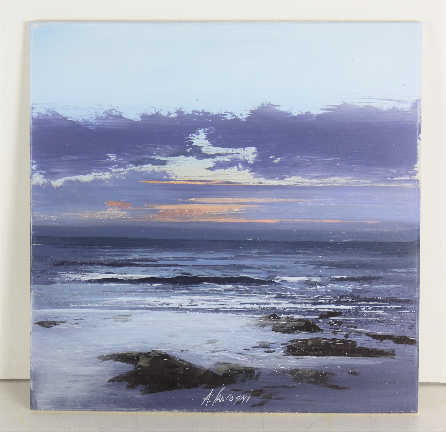 AGOSTINO CANCOGNI (1950) - Spiaggia di sera – Olio su tavola cm 30x30 – Opera con autentica