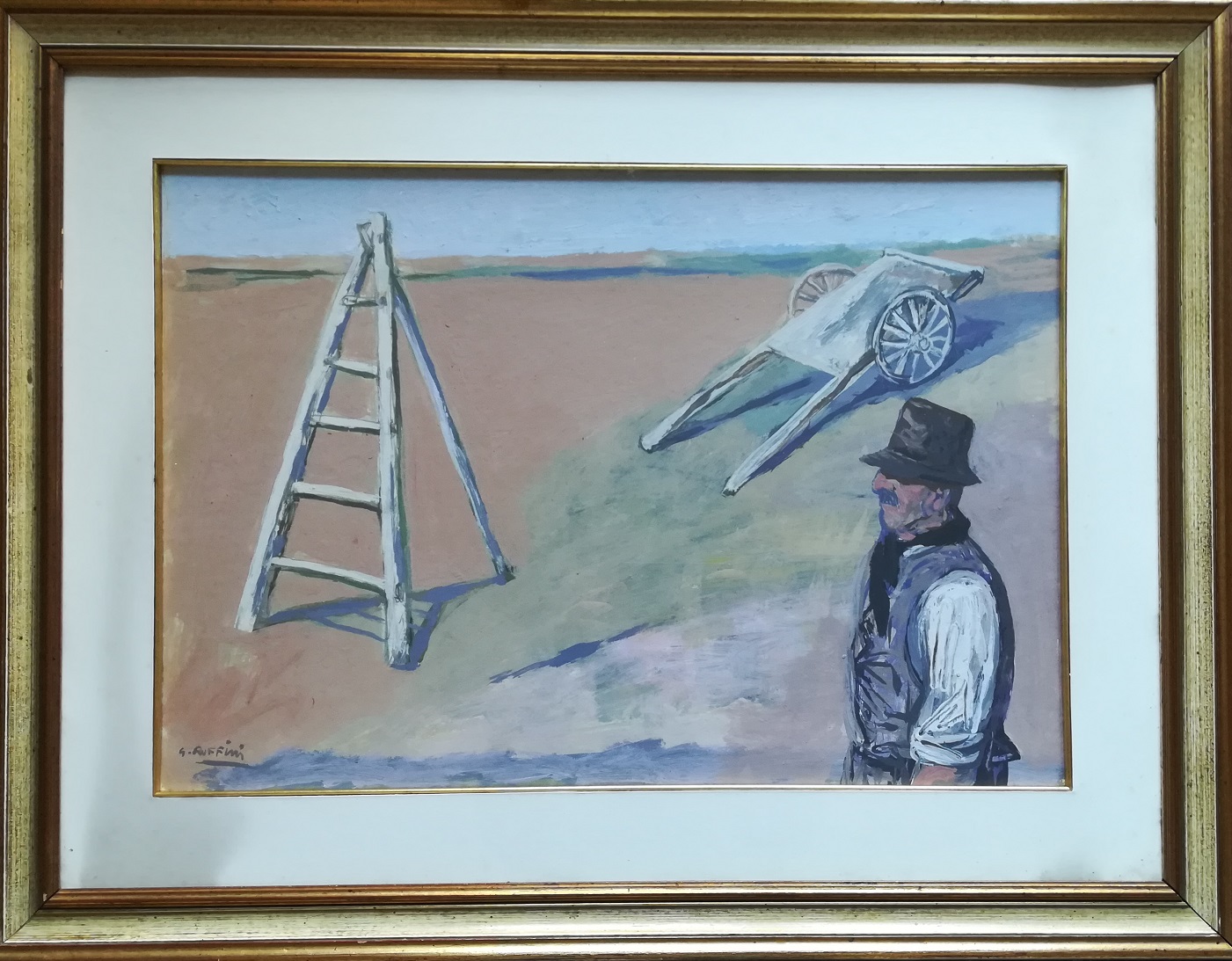 GIULIO RUFFINI (1921-2011) – Contadino – Tempera su tavola cm 41x59,5 – Opera con cornice