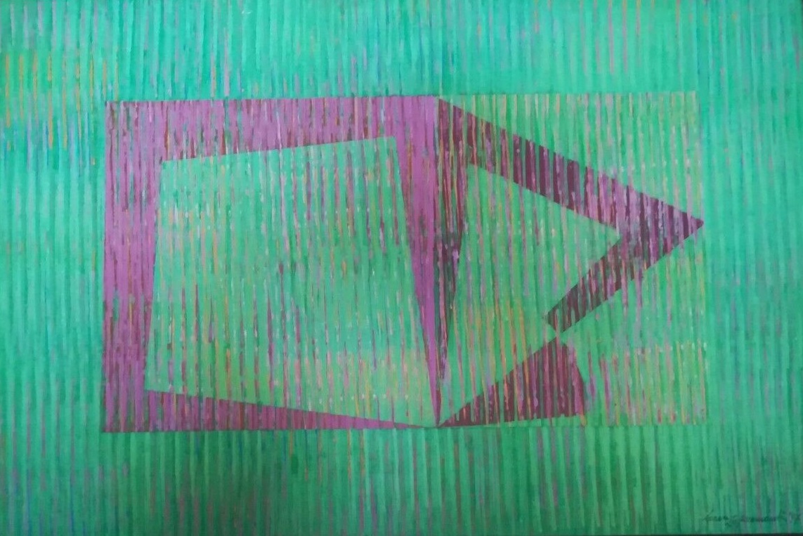 LORENZO PIEMONTI (1935-2015) – Accelerazioni – Acrilico su faesite del 1997 cm 74x50 – Opera con cornice e autentica a cura di Moscardo Francesca Piemonti