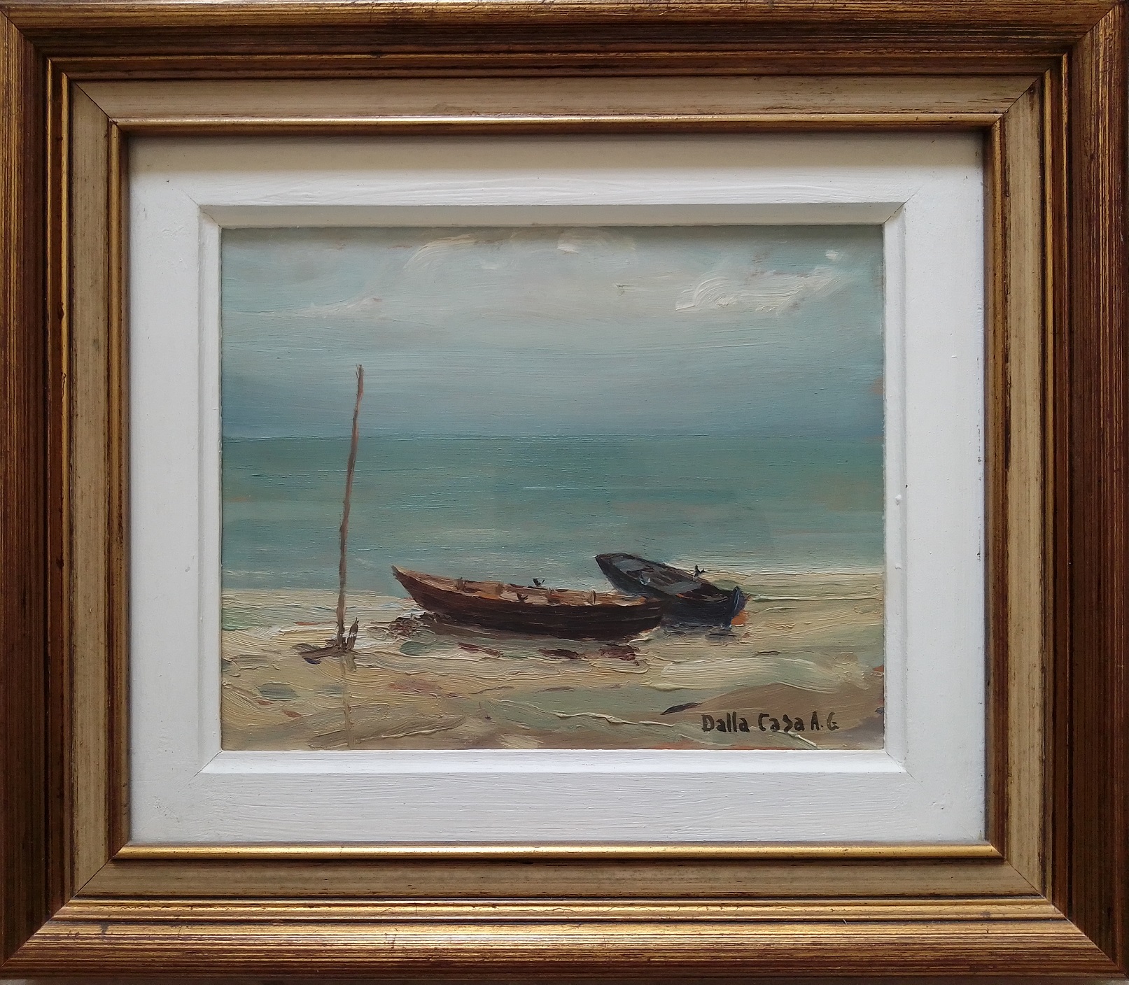 ALBERTO DALLA CASA (1949) – Barche – Olio su tela cm 20x25 – Opera con cornice
