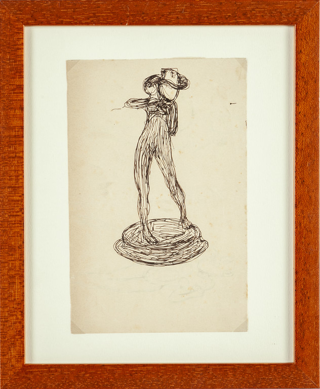 'disegno originale di Rubaldo Merello databile dopo il 1914 riconducibile alle sculture in gesso di Merello scomprse e documentate da fotografie d'epoca nello studio dell'artista'