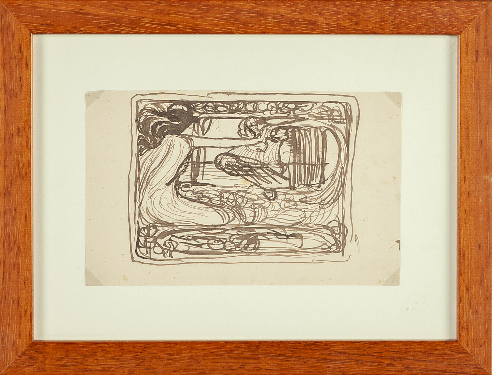 disegno originale di Rubaldo Merello databile dopo il 1914. Motivi decorativi frequenti in Merello a chiusura di un ciclo di illustrazioni per testi come per le 'Nozze dei centauri' di Sam Benelli (1915)