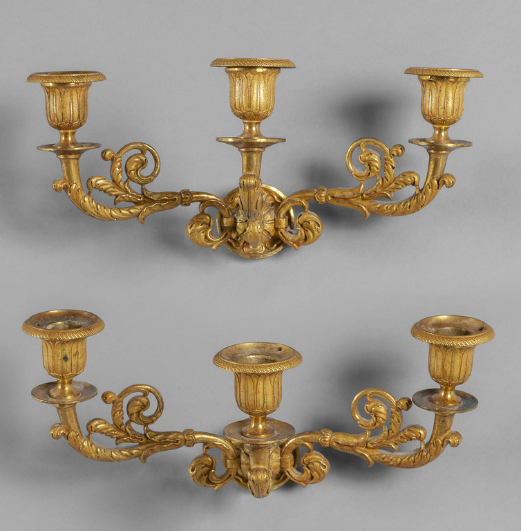 Coppia di apliques a tre luci in bronzo dorato Francia sec.XIX