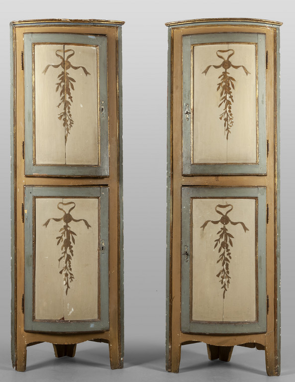 Coppia di angonali a due sportelli bombati sul fronte laccati in policromia Piemonte sec.XVIII