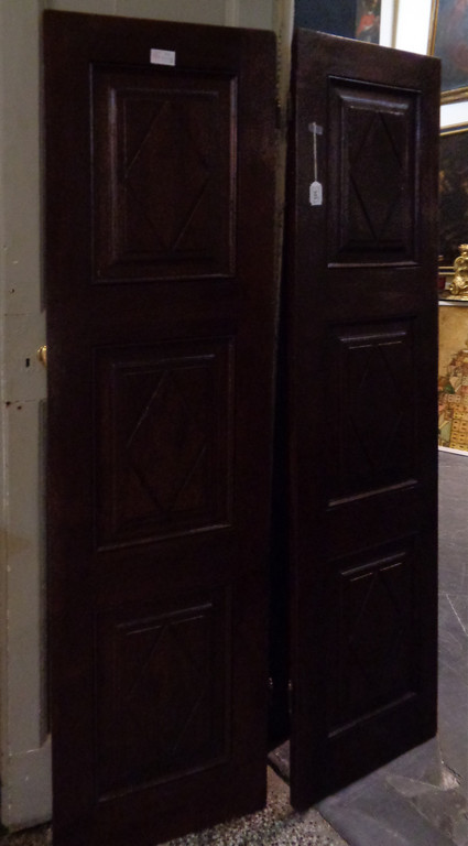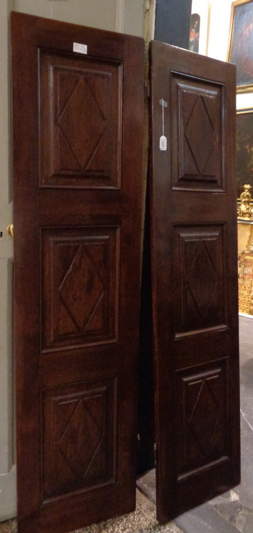 Due ante di armadio Luigi XIV scolpite a motivo di rombi inizi sec.XVIII