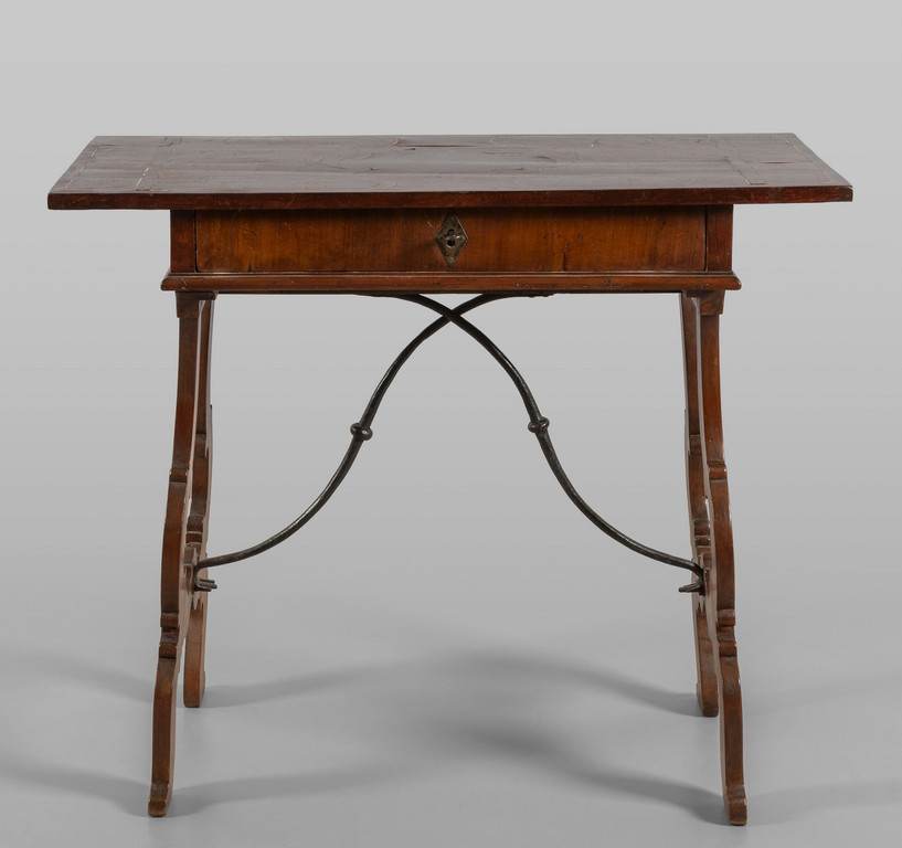 Piccola fratina Luigi XIV lastronata in noce e filettata in avorio inizi sec.XVIII