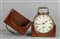 Antico svegliarino in bronzo dorato con custodia coeva in legno macchina f.ta Muller & C. Torino Via San Francesco da Paola 6