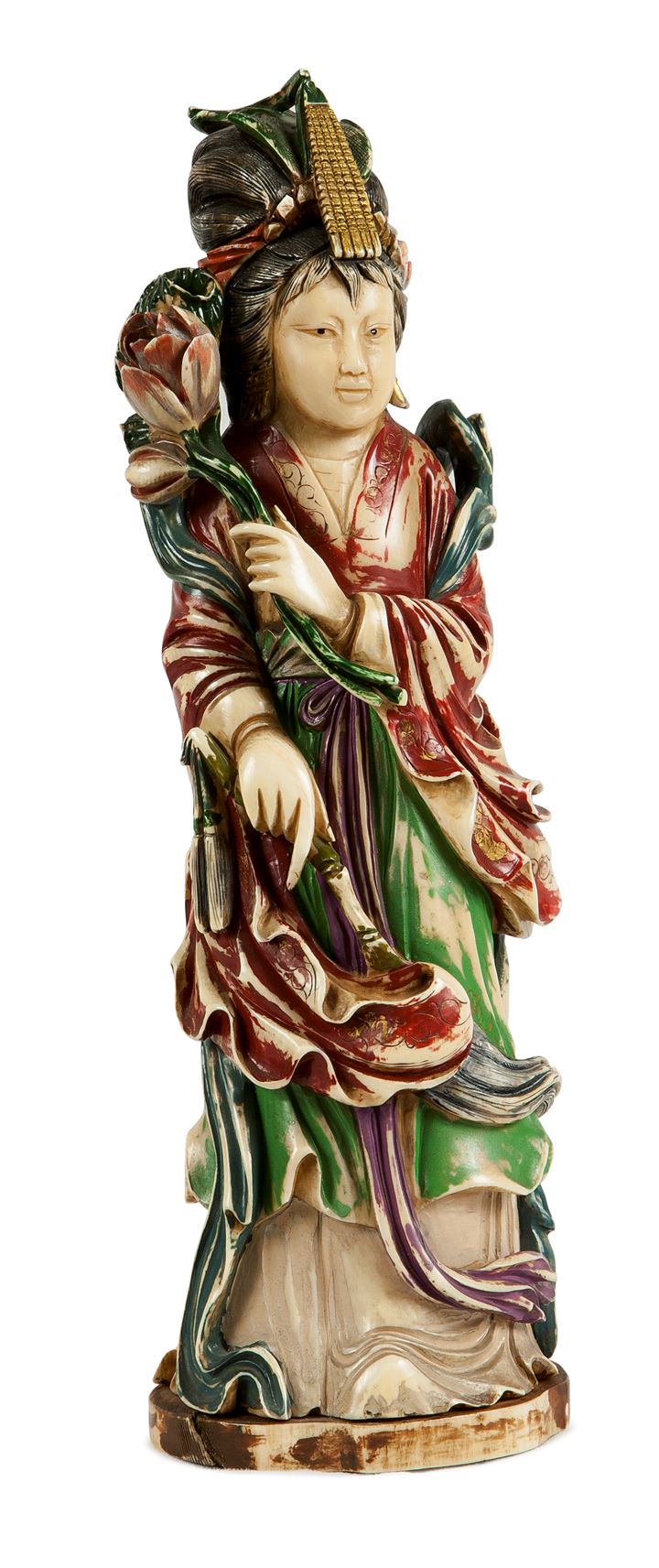 Lot 671 | STATUINA IN AVORIO Statuina in avorio dipinta in policromia, raffigurante una...