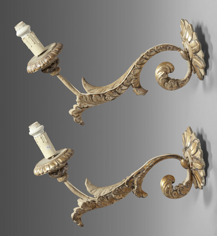 Coppia di bracci Carlo X ad una luce in legno e ferro inizi sec. XIX