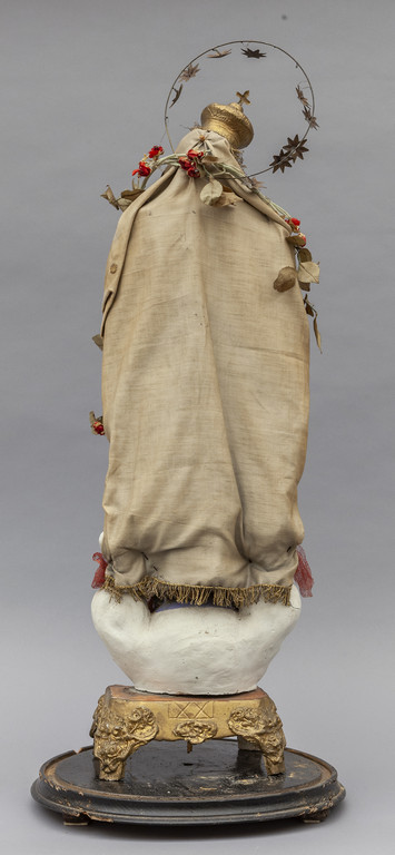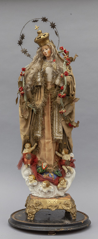 Madonna tra le rose e angioletti scultura in cartapesta sec.XIX dentro campana in vetro