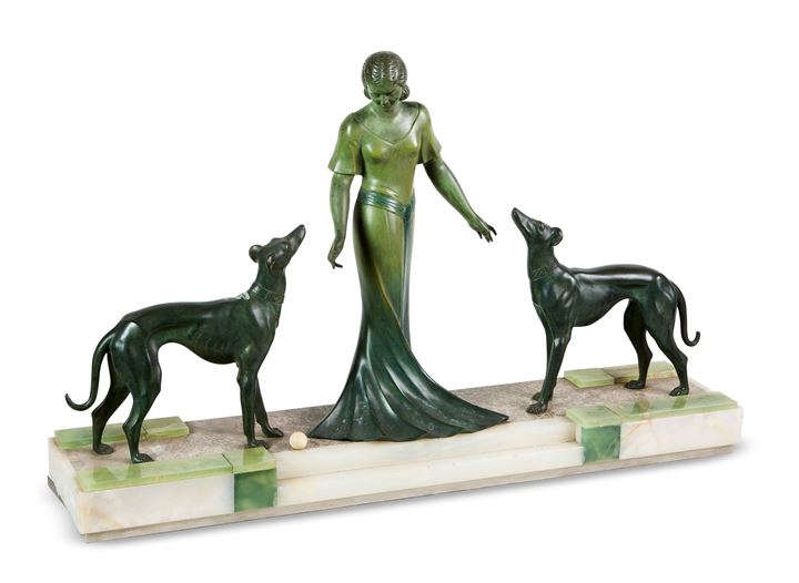 SCULTORE ANONIMO primi anni del '900 "Figura femminile con due levrieri"...