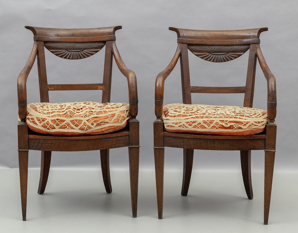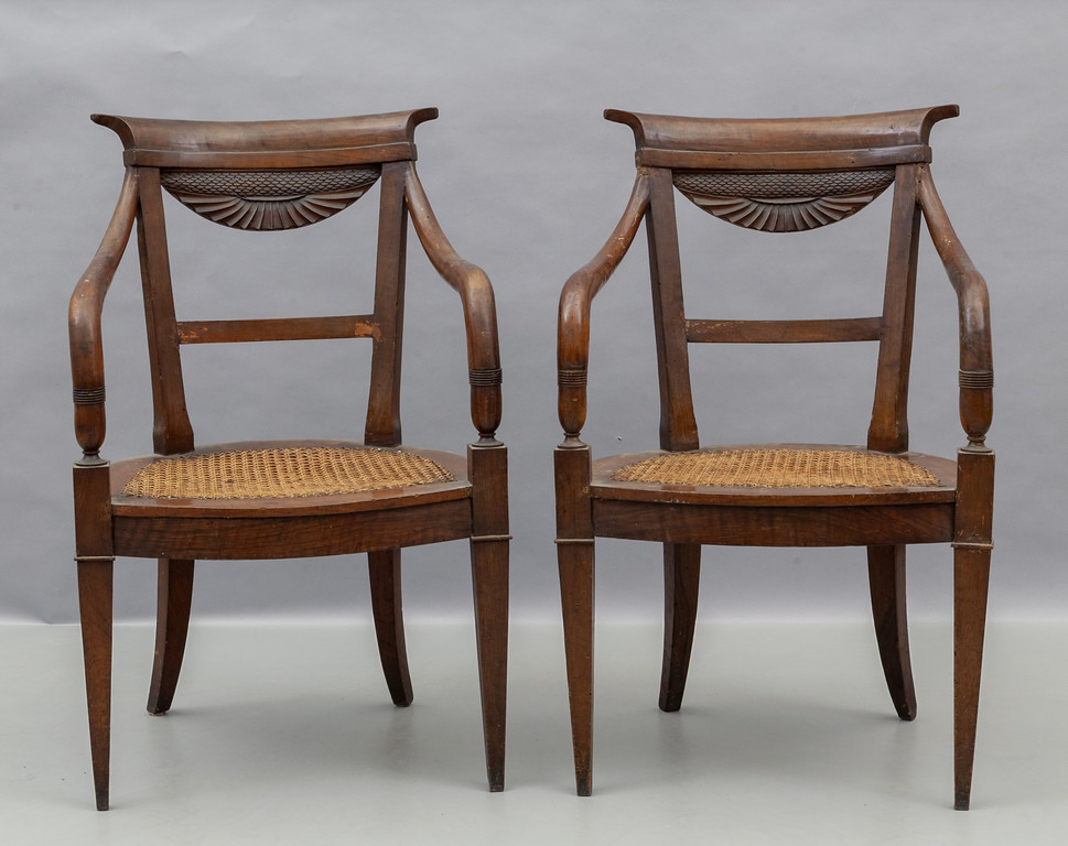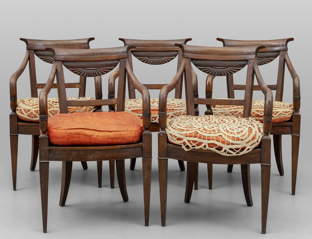 Cinque poltrone Direttorio in noce Genova inizi sec.XIX