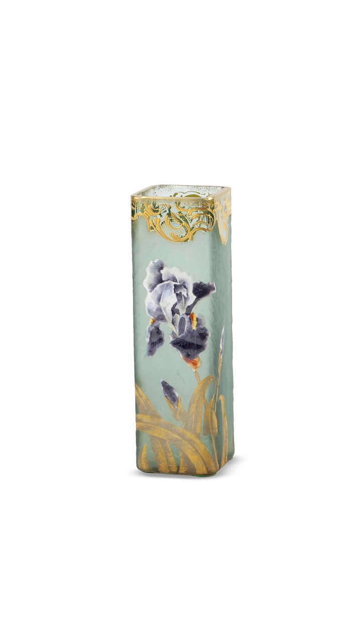 Lot 688 | MONT JOIE Vaso a sezione quadrata in vetro doppio, decoro di iris dipinto a...