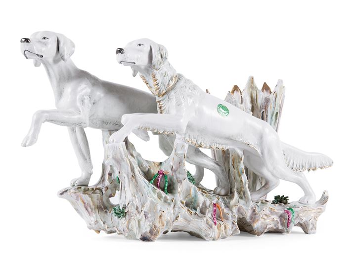 Lot 691 | GIRARDI P. "Cani da caccia" 29x47 scultura in ceramica policroma Opera...