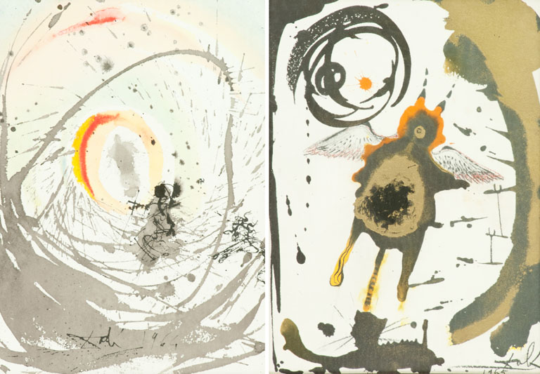 Salvador Dalì Lotto unico di due Opere - "Senza titolo", 1964, Serigrafia su carta, cm. 47x35, firma e data sulla lastra in basso al centro; - "Senza titolo", Serigrafia su carta, cm. 47x35, firma e data sulla lastra in basso a destra.