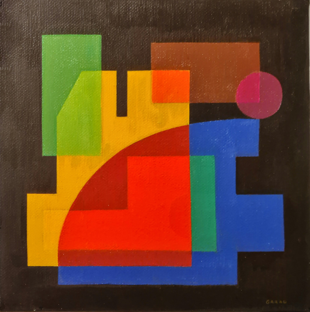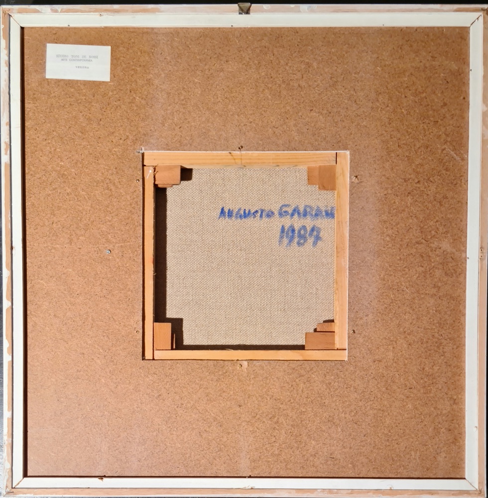 Acrilico su tela 30x30 cm, firma in basso a destra; firma e anno al retro.