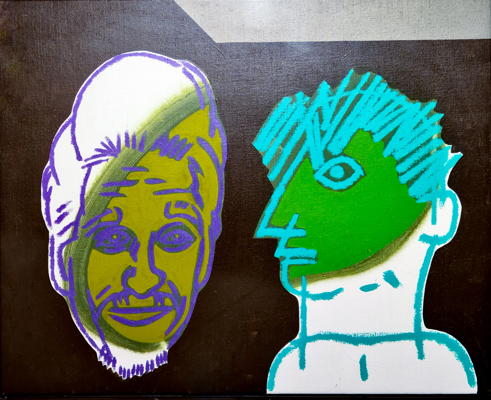 Acrilico e smalto su tela 50x60 cm; firma e dati al retro.