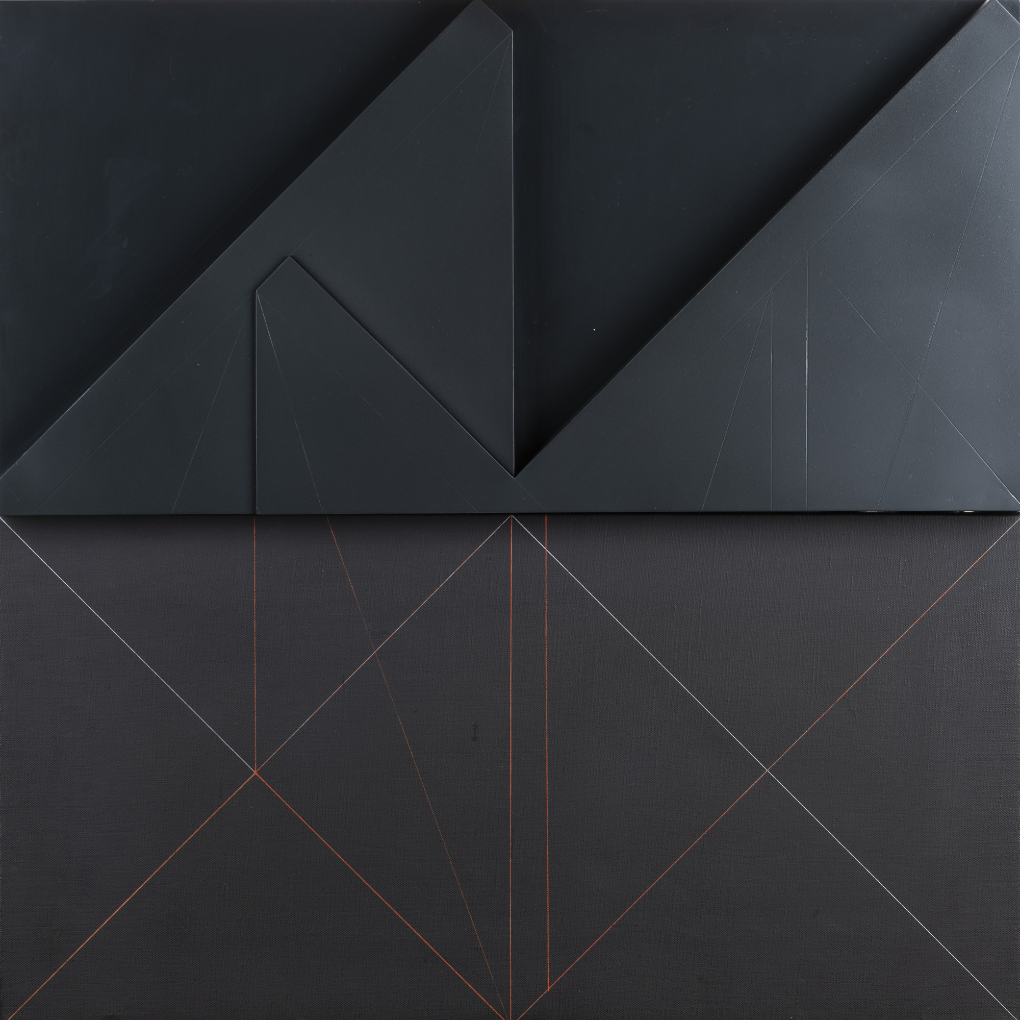 Metallo intagliato e pittura su tela, cm. 60 x 60 x 2,5