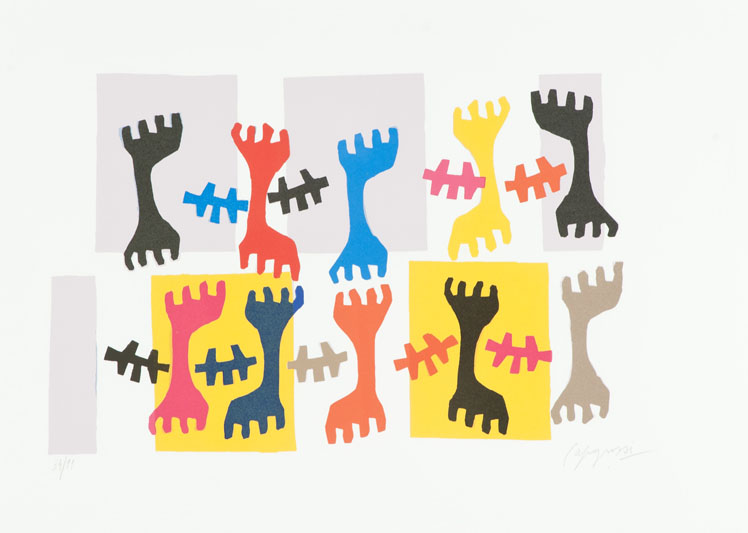 Giuseppe Capogrossi Senza titolo Litografia su carta, cm. 50x69,5, es. 34/99 Firma dell'Artista e timbro a secco "Il Torchio" in basso a destra, tiratura in basso a sinistra.