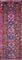 Corsia persiana Shiraz fondo rosso con sei medaglioni geometrici in bianco e azzurro alternati, 375x143