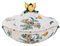 Zuppiera in maiolica, Cerreto Sannita, XVIII secolo decorata da composizioni floreali policrome; coperchio sormontato da frutti, 22x34x25