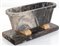 Vaschetta ovale in marmo sorretta da piedi ferini in giallo di Siena su base rettangolare in marmo nero africano, 9x18x7,5