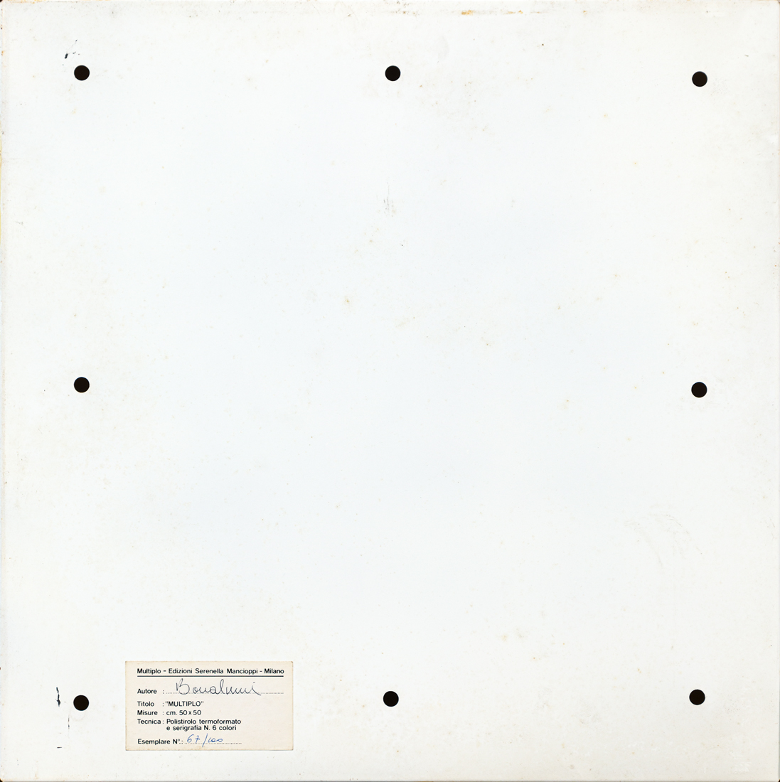 Etichetta al retro con firma a penna dell'Artista e numerazione (Esemplare 67/100)