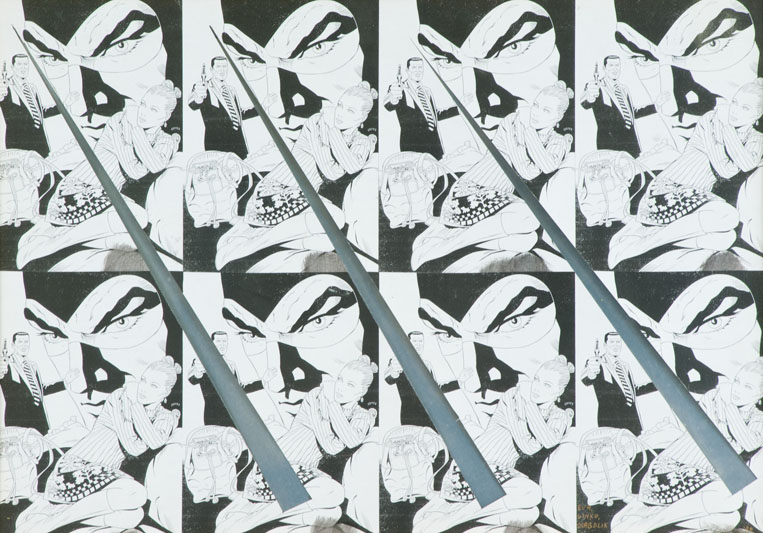 Malipiero Eva, Ginko, Diabolik, 1999 Collage cm. 49x69 Firma, data e titolo in basso a destra. Autentica dell'Artista su foto.